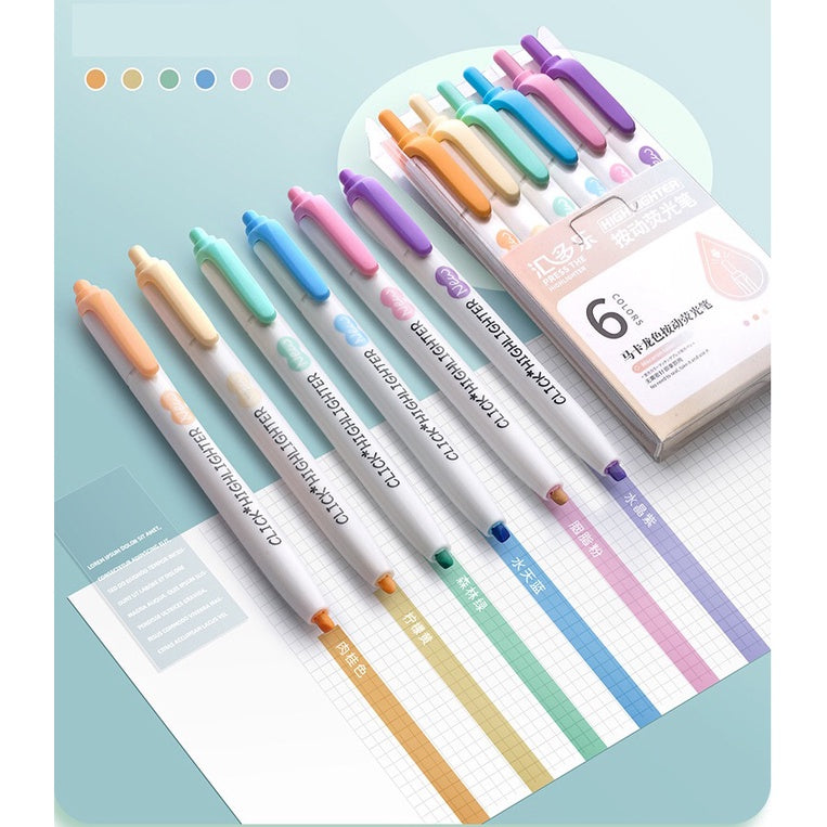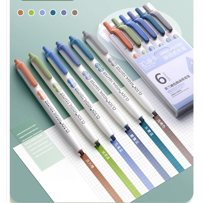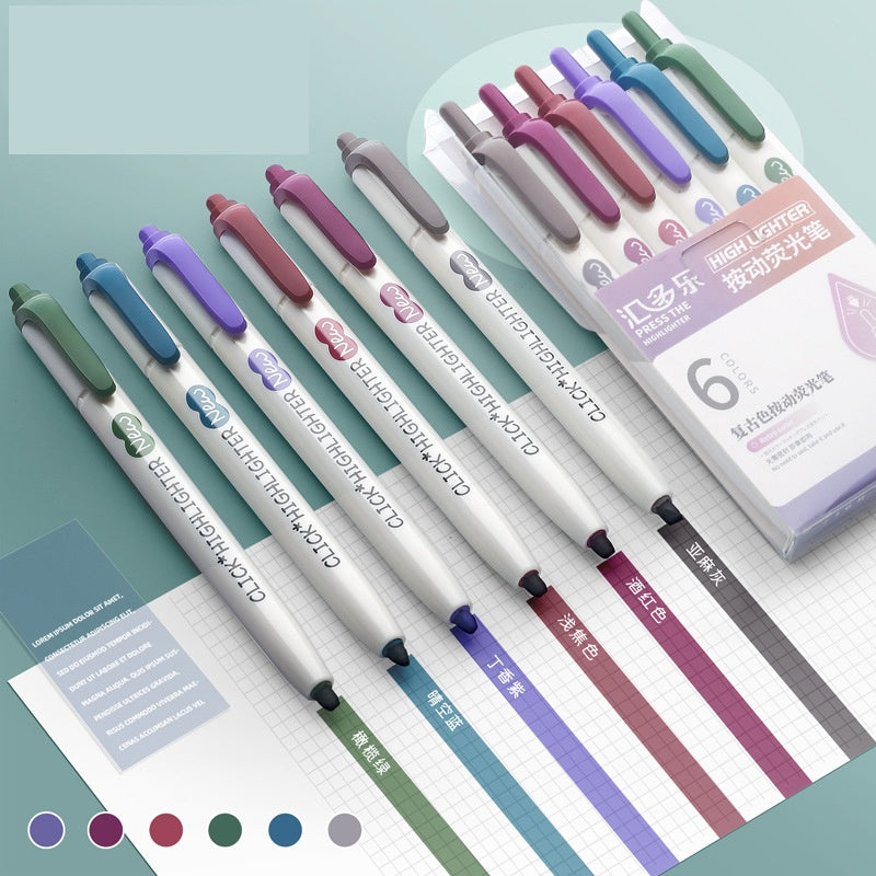 6Pcs Retractable Highlighter Fluorescent Markers for School & Office Supplies