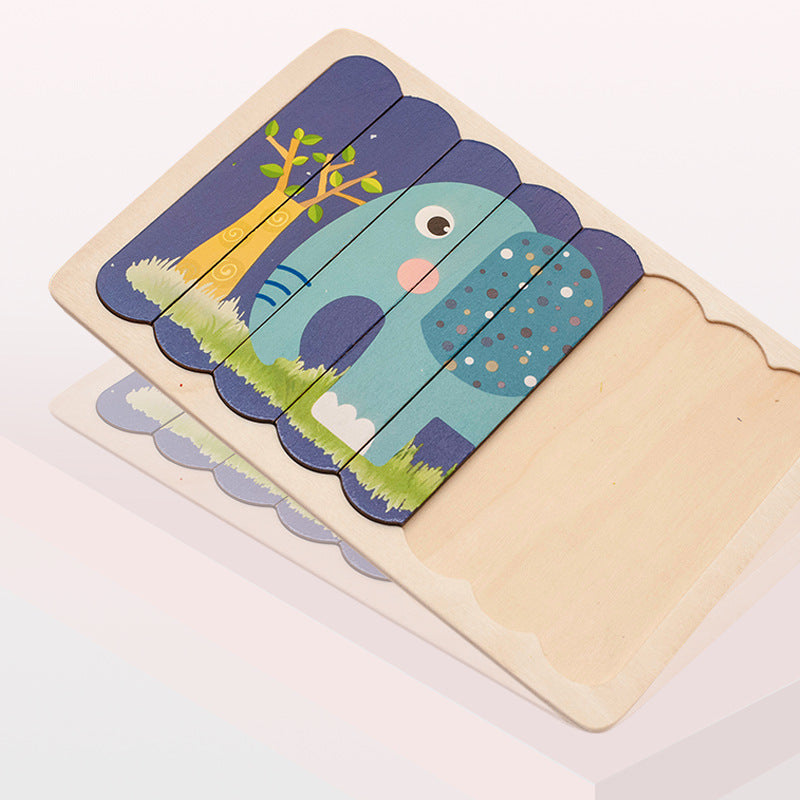 8pcs. Strip 3D Tell Story Kids Gift Educational Toys Animal Jigsaw Wooden Puzzle