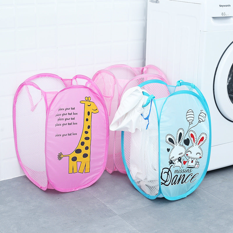 • Cute Kids Cartoon Foldable Laundry Storage Bag Polyester Mesh Organizer Dirty Clothes Storage