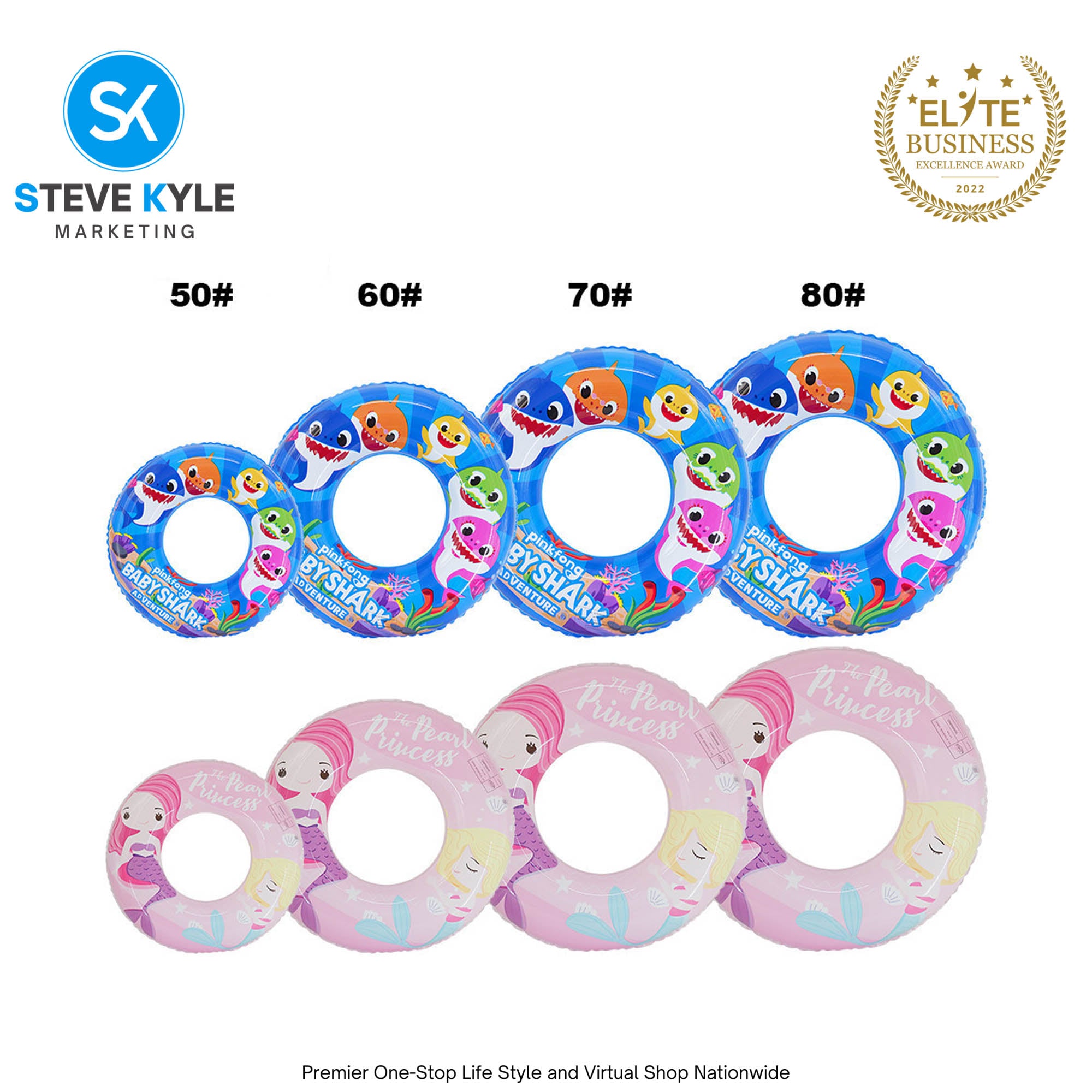 Inflatable Mermaid Baby Shark Swim Ring Floater for Kids and Young Adult Boys and Girls