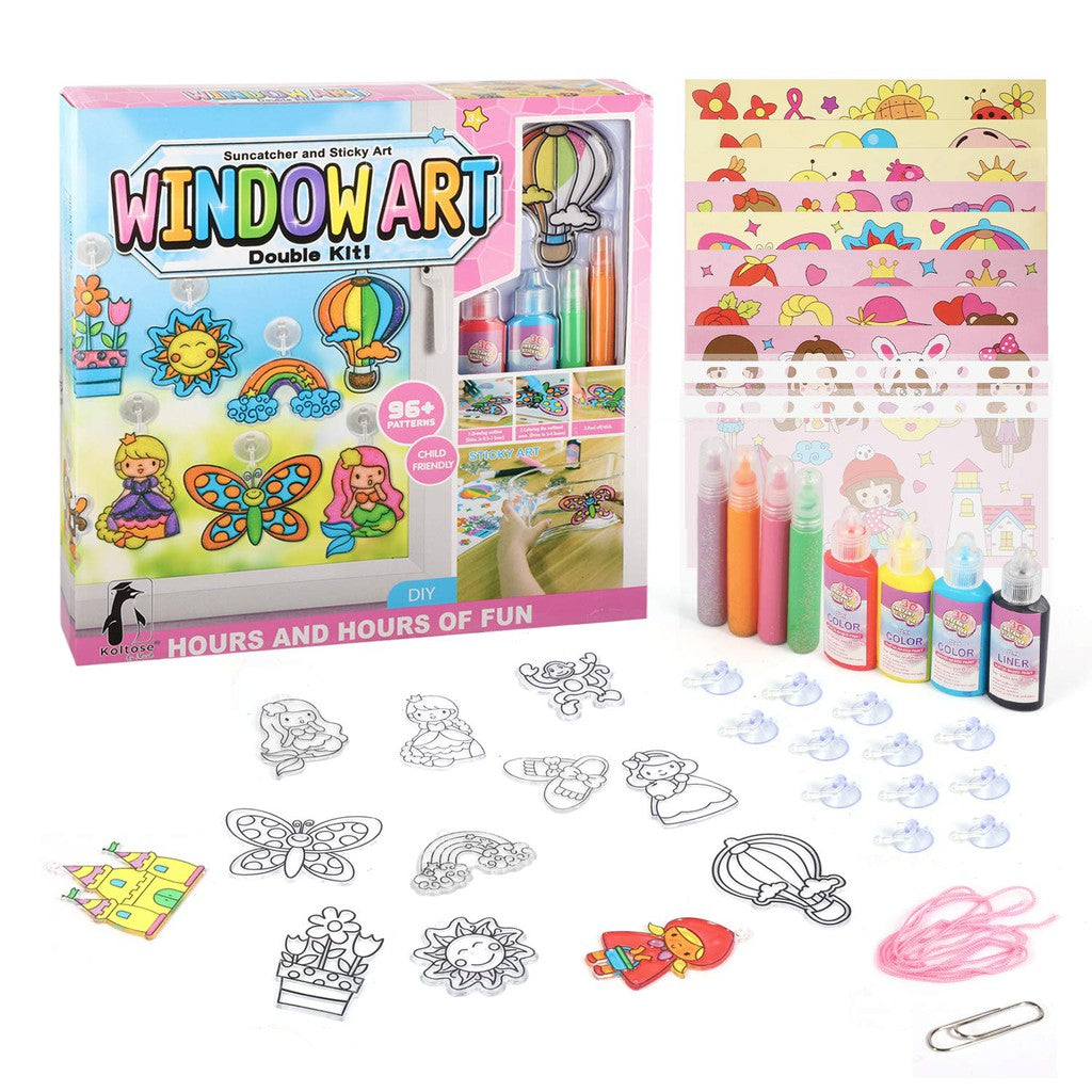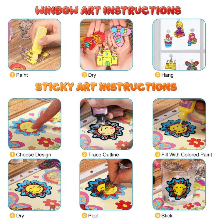 • Educational DIY Toys Crystal color glue painting two in one 3D Window Art and Sticky Sun catcher Double Craft Kit for Kids• Trace illustrations from the included design booklet or create custom creations with the acetate sheet and paint pens to make one-of-a-kind window clings.• Mix colors, create fun...