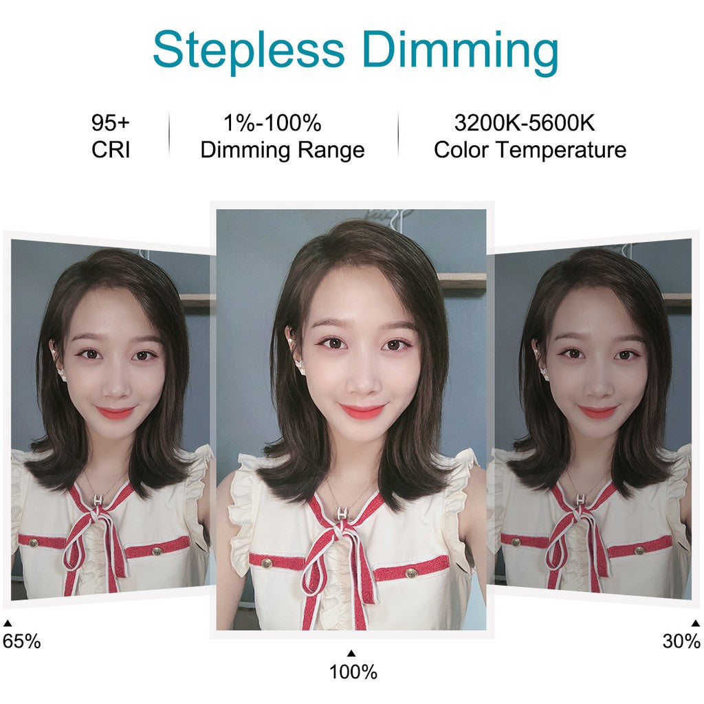 3 colors lighting mode adjustable brightness for your choice,you can adjust the color and brightness very easily, excellent brightness can be achieved without installing extra colorful filters. Three colors of soft natural light illuminate your beauty on different occasions.