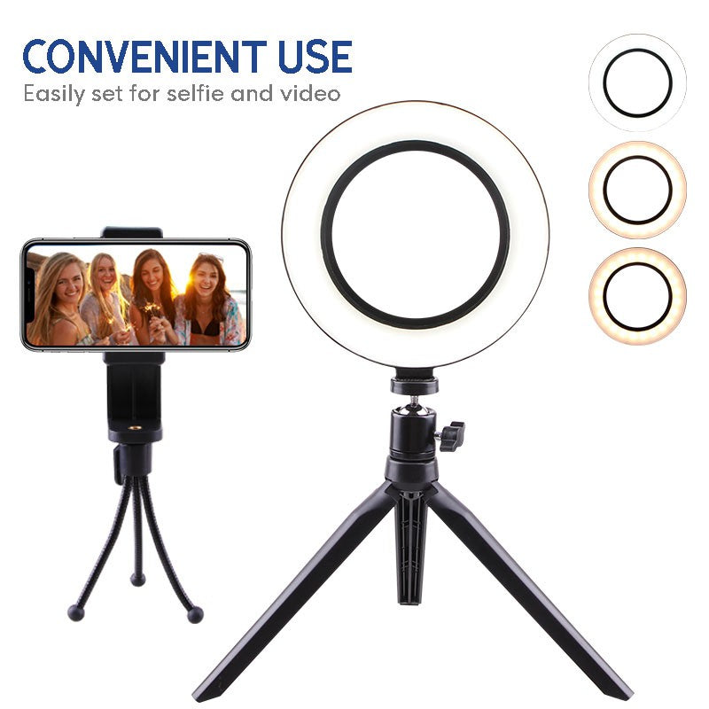(RLL-003) 16CM 4-in-1 LED Ring Light with Desktop Tripod for Vlogging and Mini Studio