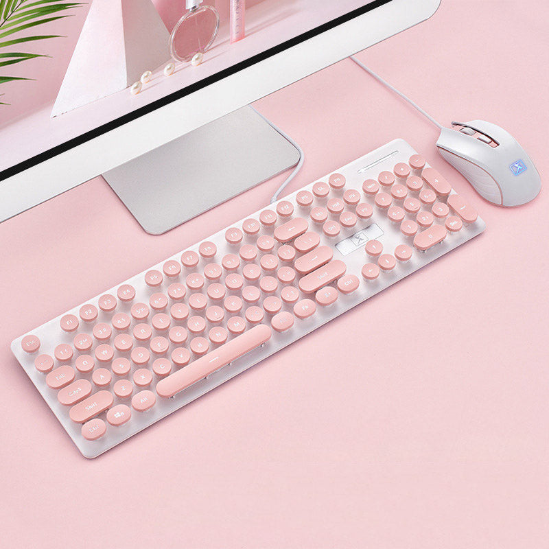 N518 Retro Punk Exterior USB Wired Keyboard and 1600DPI Mouse Combo for Office and Game